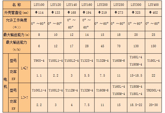 LSY螺旋輸送機(jī)與其他輸送設(shè)備相比較,具有結(jié)構(gòu)簡(jiǎn)單、橫截面尺寸小、密封性能好等特點(diǎn),可以中間多點(diǎn)裝料和卸料,操作安全方便以及制造成本低。設(shè)備缺點(diǎn)是機(jī)件磨損較為嚴(yán)重,輸送量較皮帶機(jī)低,消耗功率大以及物料在運(yùn)輸過(guò)程易被破碎。