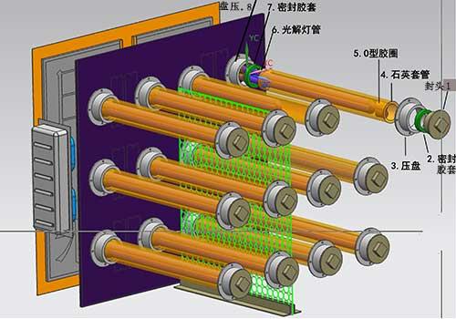 3.需控制好光解的進(jìn)氣條件,包括溫度、濕度、粉塵及氣體黏性物質(zhì)的含量、pH等,方可保證較高的高凈化效率。(廢氣溫度宜為常溫,不高于60℃;廢氣的相對(duì)濕度應(yīng)低于95%;pH適宜的范圍為7~9;預(yù)處理設(shè)備應(yīng)盡量降低粉塵和其他黏性或油脂性顆粒物,一般預(yù)處理后其含量不高于10mg/m3。)